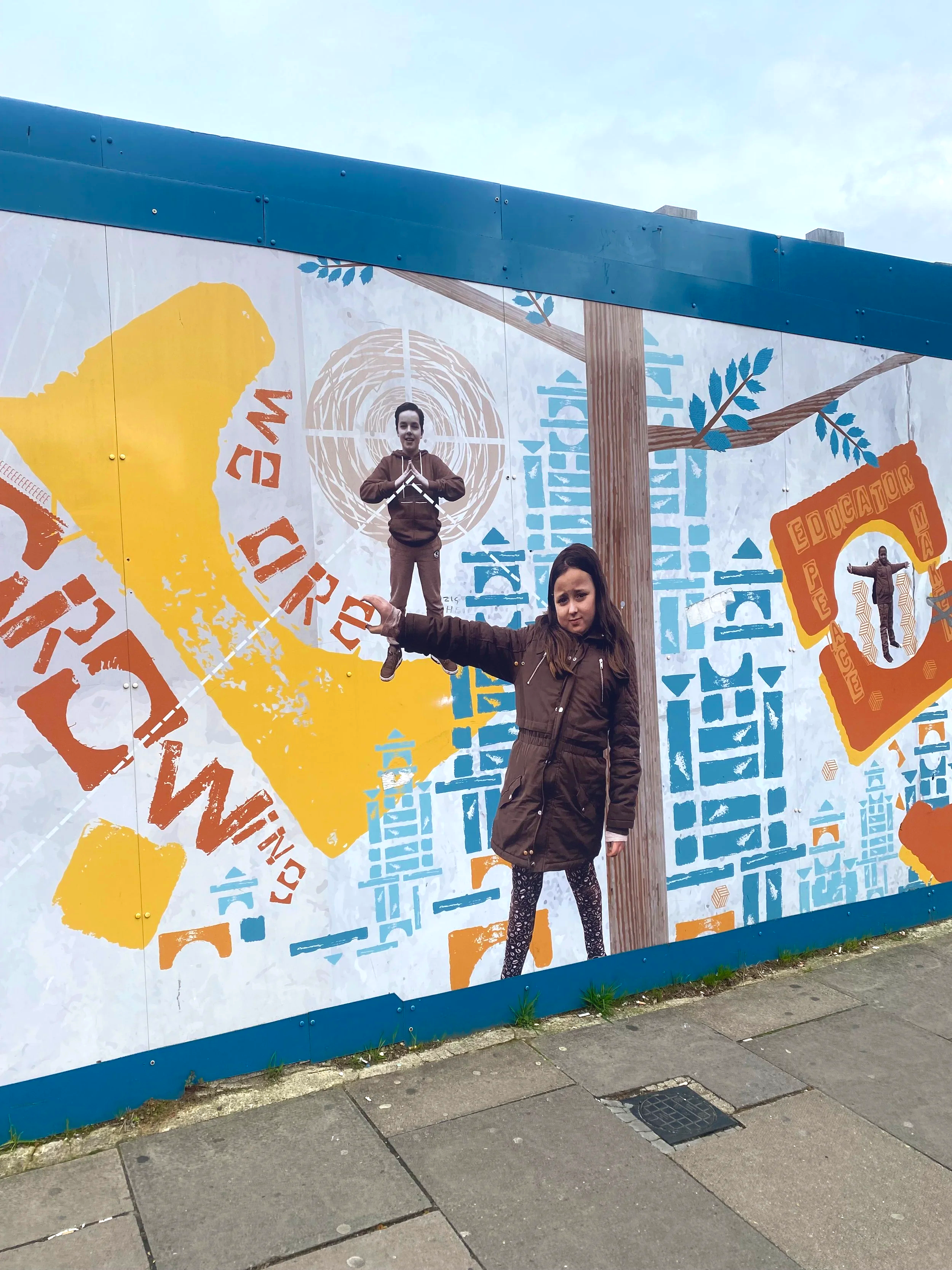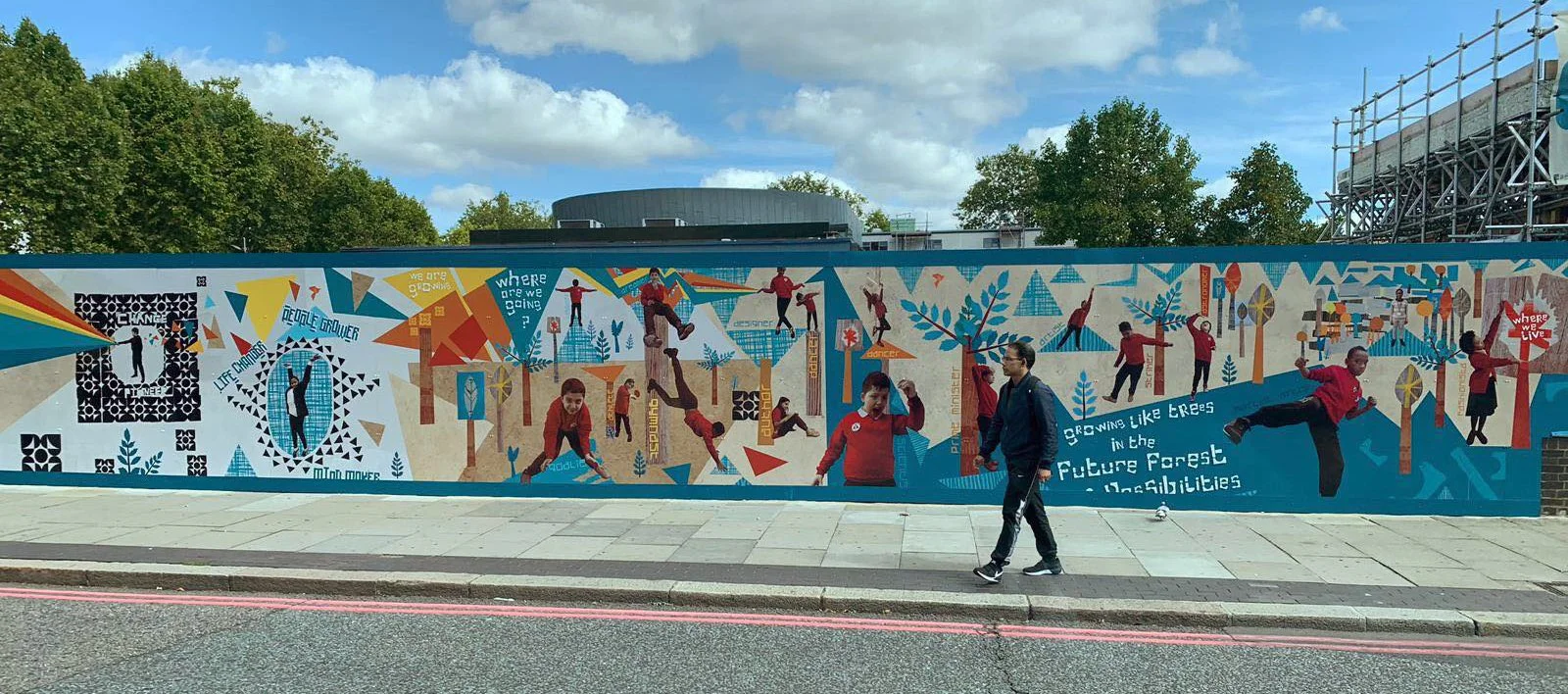 The images show the QK design process and how this work feeds directly into the final hoarding designs. We’ve also included other sections of the hoardings, as well as Holy Trinity Primary’s Future Orchard celebrating the careers the young people want to grow. The final design covers 130m stretch, directly outside Swiss Cottage Tube Station.