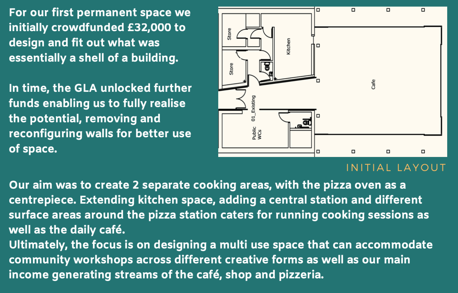 Having crowdfunded, re-designed and overseen the renovations of the cafe, we are happy to say it’s now being run by a like minded community organisation, whilst we grow in Hackney.
